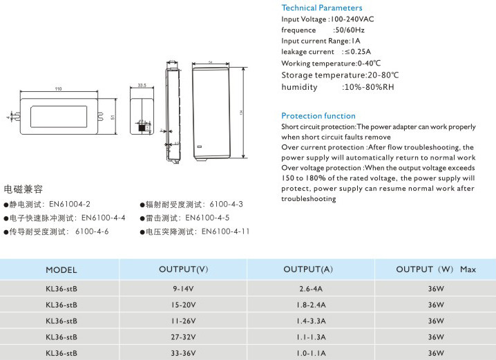 短路保護:電源適配器在短路解除時能正常工作恢復
